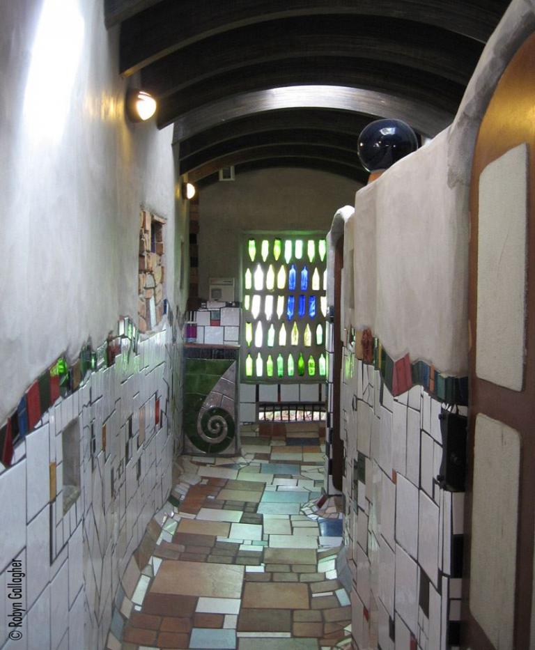 Die Toilette wurde von dem Wiener Künstler, der von 1973 bis zu seinem Tod 2000 in Kawakawa lebte und auch die neuseeländische Staatbürgerschaft hatte, in dem für ihn typischen Stil mit geschwungenen Linien, unregelmäßigen Keramikfliesen, integrierten Kleinskulpturen, farbigen Gläsern und einem in die Architektur einbezogenen Baum gestaltet. Diese Toilette ist übrigens das einzige Hundertwasser-Gebäude auf der südlichen Hemisphäre. Eröffnet wurde sie 1999. Funktional unterscheidet sie sich nicht von anderen Bedürfnisanstalten. Anders als diese ist sie jedoch die Hauptattraktion von Kawakawa und die meistfotografierte Toilette Neuseelands. Die Zahl der fotografierenden Besucher übersteigt diejenige derer, die die Anlage als Toilette nutzen, bei weitem.