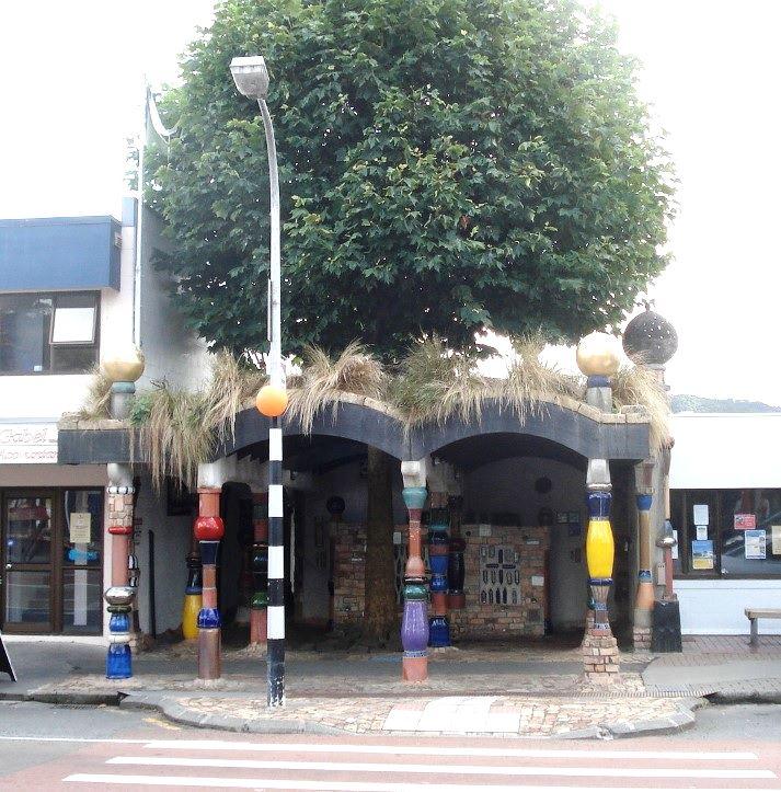 1998 wandte sich der Verein der örtlichen Kaufmannschaft an Hundertwasser mit der Bitte, die Umgestaltung des aus den sechziger Jahren stammenden Gebäudes zu übernehmen, nicht nur, weil diese morode war, sondern auch, um Kawakawa ein Zeichen Hundertwassers Kunst zu schenken. Wie überliefert ist, beteiligte sich Hundertwasser nicht nur an der Finanzierung, sondern legte bei der Umgestaltung selbst Hand an. Unter anderem gestaltete er eigenhändig die Säulen und setzte sie mit Keramik aus Asien zusammen. Eine Flaschenwand ließ er in Anlehnung an das „Bottlehouse“ auf seinem Anwesen gestalten. Auch für die Bewaldung des Daches sorgte er selbst. Für die Front des Gebäudes suchte er eine Platane aus, die jetzt gewissermaßen einen Schirm über dem Eingang bildet. Für die Rückseite wählte er einen Tulpenbaum. In die Gestaltung eingebunden waren auch Künstler der Maori und der Töpfer Peter Yeates.