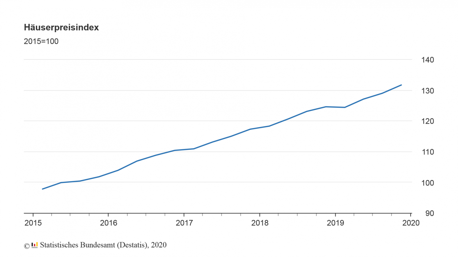 Die steigende Nachfrage nach Wohnraum hinterlässt weiterhin deutliche Spuren in der Geldbörse der Investoren. So kannten auch 2019 die Preise für Wohnimmobilien (Häuserpreisindex) in Deutschland wieder nur eine Richtung: Aufwärts. So mussten Immobilienkäufer im 4. Quartal 2019 durchschnittlich 5,7 Prozent mehr bezahlen als im 4. Quartal 2018. Wie das Statistische Bundesamt (Destatis) weiter mitteilt, verteuerten sich Wohnimmobilien weiterhin sowohl in der Stadt als auch auf dem Land. In den sieben größten Metropolen (Berlin, Hamburg, München, Köln, Frankfurt, Stuttgart und Düsseldorf) waren Eigentumswohnungen 9,5 Prozent und Ein- und Zweifamilienhäuser 6,5 Prozent teurer als im Vorjahresquartal. In den anderen Großstädten ab 100 000 Einwohnern stiegen die Häuserpreise um 7,7 Prozent und die Preise für Eigentumswohnungen um 6,0 Prozent. Auch in dünn besiedelten ländlichen Kreisen wurden Wohnimmobilien im Durchschnitt teurer. Dort erhöhten sich die Preise für Häuser um 5 Prozent und für Eigentumswohnungen um 0,6 Prozent. Noch ist beim Aufwärtstrend kein Ende in Sicht. So meldet das Statistische Bundesamt für Februar 2020 erneut um 3,4 Prozent teurere Baupreise gegen über Februar 2019. Im Vergleich zum November 2019 erhöhten sich die Neubaupreise für Wohngebäude im Februar 2020 um 1,3 %