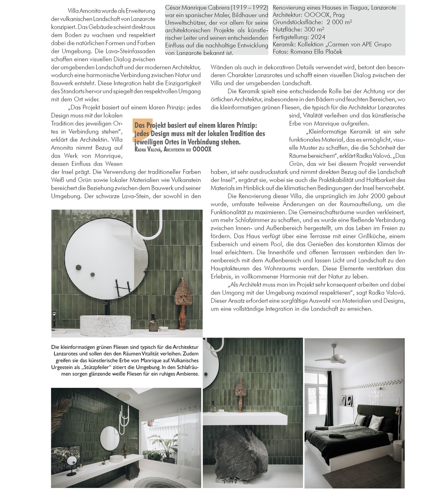 Die keramische Ausstattung erfolgte mit Produkten von APE Grupo, Kollektion „Carmen“