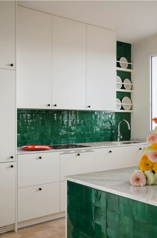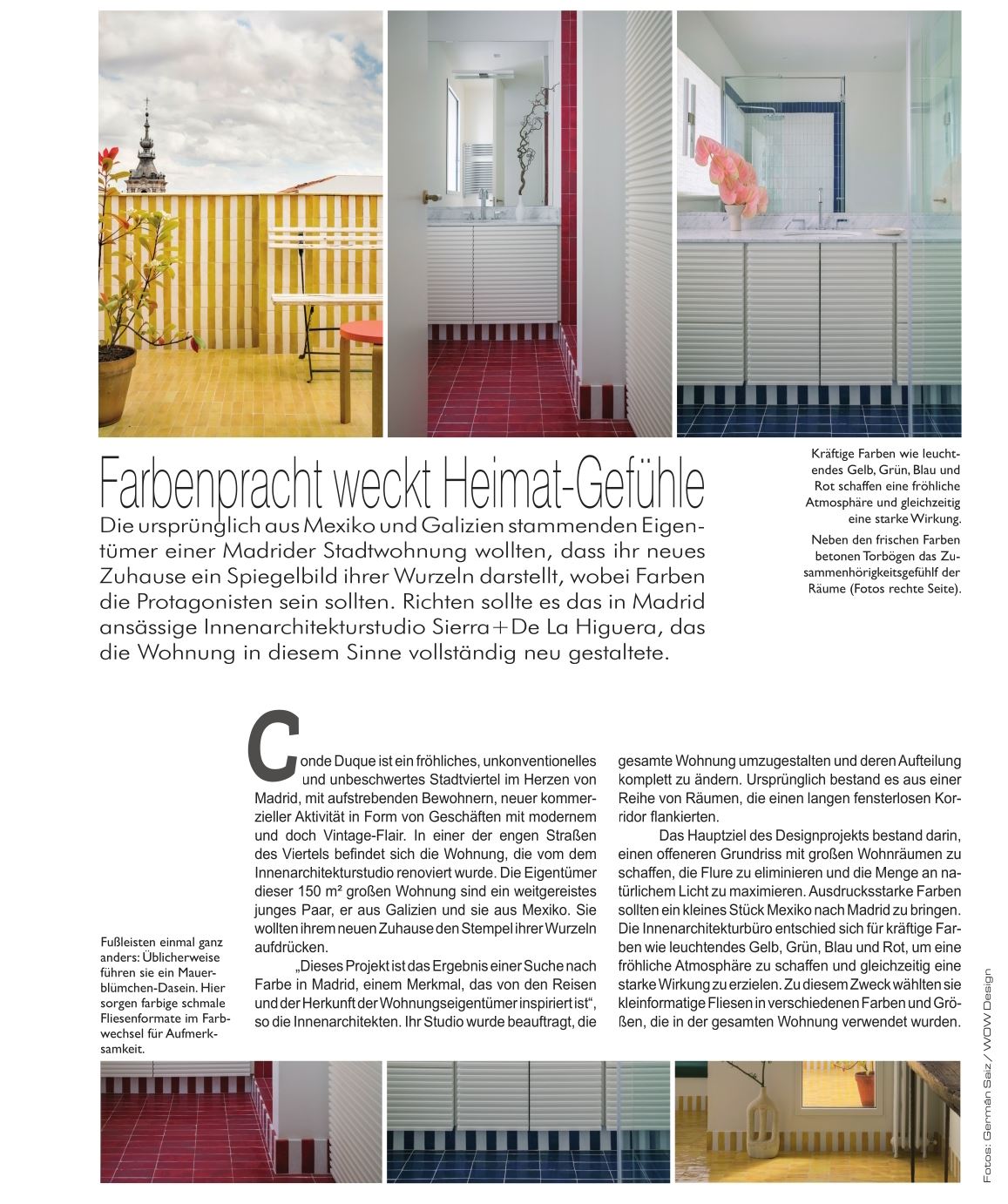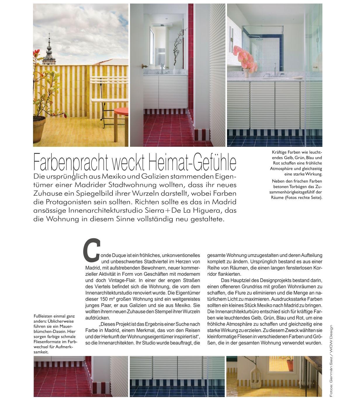 Mit bunten Fliesen des Fliesenherstellers WOW Design (https://www.wowdesigneu.com/) sorgte das Innenarchitekturstudio Sierra+De La Higuera (https://sierradelahiguera.com/) für ein heiter buntes Ambiente einer Wohnung in Madrid.
