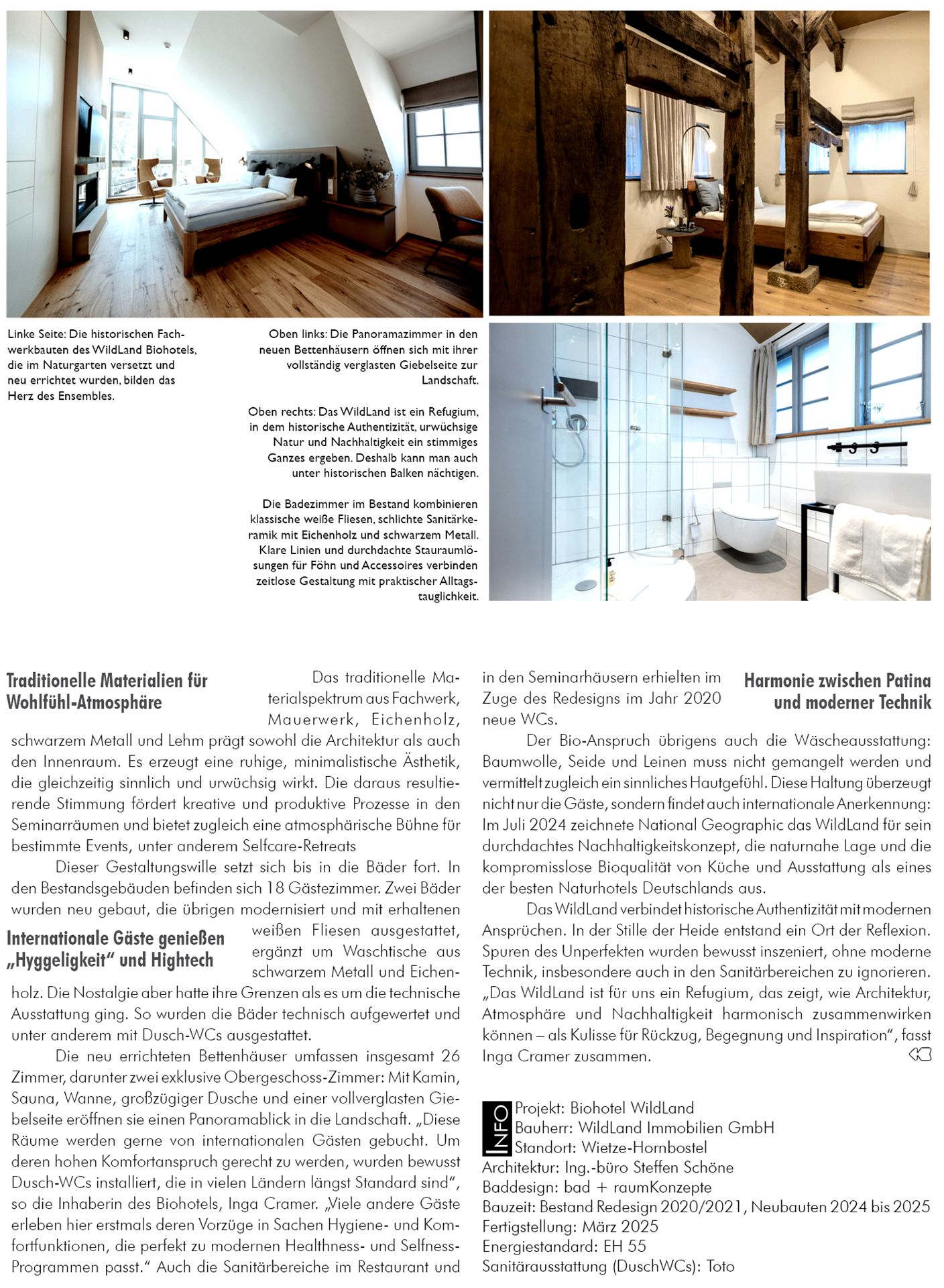 Das Naturhotel „WildLand“ (https://www.wildland.de/) liegt in der südlichen Lüneburger Heide, in Hornbostel bei Wietze und ist umgeben von wundervoller Natur. Die natürliche Umgebung und die Landschaft laden ein zum Laufen, Kraft tanken und tief durchatmen. Einfach mal unter einem riesigen Baum sitzen oder in den weiten Himmel der klaren norddeutschen Landschaft schauen. Das WildLand verbindet historische Authentizität mit modernen Ansprüchen, was sich unter anderem bei der Ausstattung der Gästebäder zeigt. Dafür sorgen unter anderem DuschWc der Marke „Washlet“ des japanischen Hersteller Toto: https://eu.toto.com/de/washlet-dusch-wc