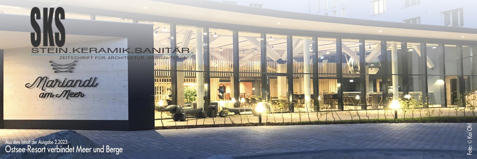 Badezimmern, sondern auch im übrigen Interieur wider. Offene Raumgefüge, verbunden mit gebleichtem Eichenholz, Naturstein und weißen Wänden. Verbindendes Element ist jeweils eine schwarze Armatur, diesmal jedoch in Kombination mit weißen Becken. Ihre charakteristischen Kreuzgriffe bilden einen Kontrast zur strengen, von vertikalen Linien geprägten Architektur.