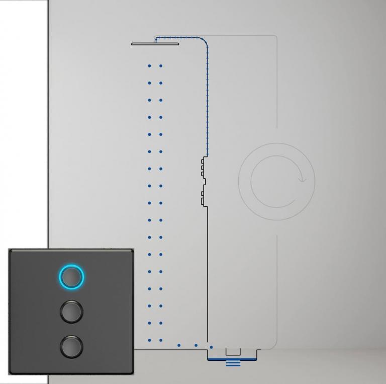 Möglich wird es mit der „Recycling-Dusche“. Sie lässt die Duschenden im wieder aufbereiteten (Dusch-)Regenwasser stehen. Das Konzept der Wasser recycelnden Dusche ist eine zirkuläre Lösung, die das Wasser reinigt, erwärmt und erneut nutzt. Die neue Technologie hat sich zum Ziel gesetzt, ein Duscherlebnis zu schaffen, mit dem man alte Gewohnheiten auch im Sparmodus ohne schlechtes Gewissen genießen kann, aber dabei gleichzeitig so wenig Frischwasser wie möglich verbraucht.