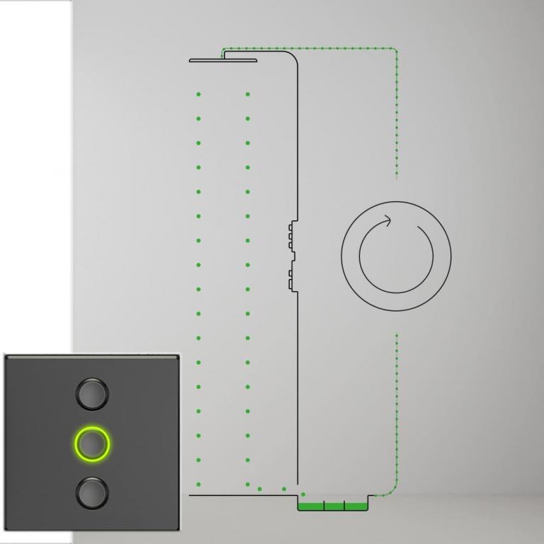 der dritte Knopf gedrückt wird, der das Szenario beendet und die Reinigung einleitet, damit die Dusche für den nächsten Gebrauch bereit ist.