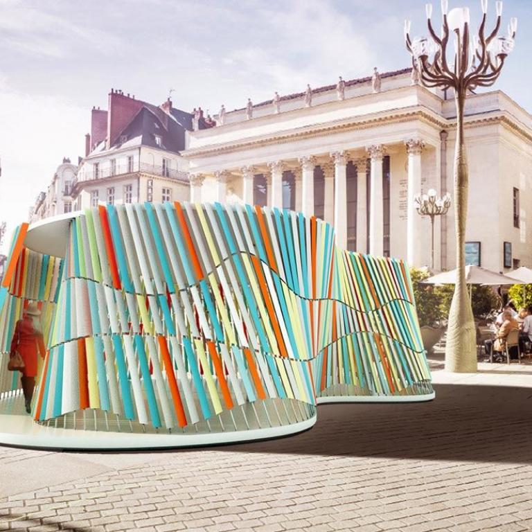 Ein weiteres Gewinner-Konzept ist "Transmittance" von Avishkar Bharati (JDAP Design-Architecture-Planning, IN-Mumbai). Hier definieren Keramikfliesen einen neuen Raum: Die wellenförmige Wand aus aufgefädelten keramischen Rohren (die üblicherweise an Fassaden eingesetzt werden) bildet eine Art Pavillon, durchzogen von Farbe und Licht. Die keramischen Rohre sind beweglich und animieren Besucher zur Interaktion, die so eine eigene Farb- und Musterwelt schaffen können. Das einfallende Licht wird von den glasierten Oberflächen reflektiert und kreiert so ein sinnliches Erlebnis. Auch die Flexibilität überzeugt: Wie ein Nomadenzelt könnte der Pavillon auf Plätzen, in Parks oder Innenräumen aufgestellt werden.